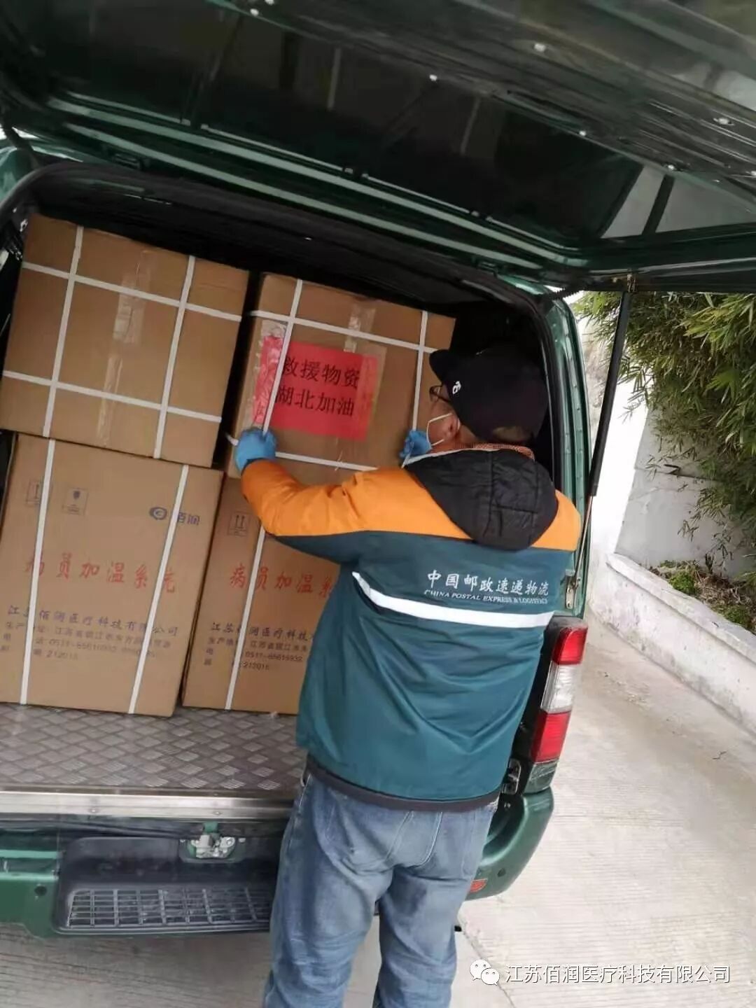 听说是支援湖北的医疗物资,连EMS小哥也满满的激情,二话不说搬运起了包装箱。