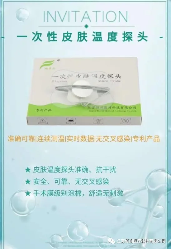 体温,是反映医疗机构麻醉医疗质量的重要结果指标。体温监测与体温保护密不可分,是围术期体温管理的重要组成部分。江苏佰润医疗是集研发、生产与销售于一体的科技型企业。20年励精图治,为麻醉质控之体温管理,提供整体解决方案,为围术期患者生命体征(体温)保驾护航!